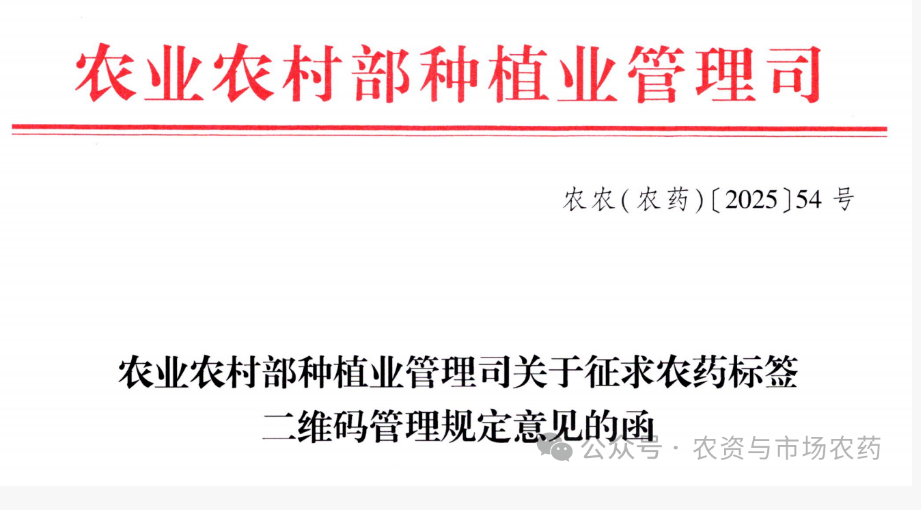 近日,农业农村部发布农业农村部种植业管理司关于征求农药标签二维码管理规定意见的函。根据《农药管理条例》《农药标签和说明书管理办法》相关规定,农业农村部拟对农药标签二维码生成格式提出如下要求,并征求意见。